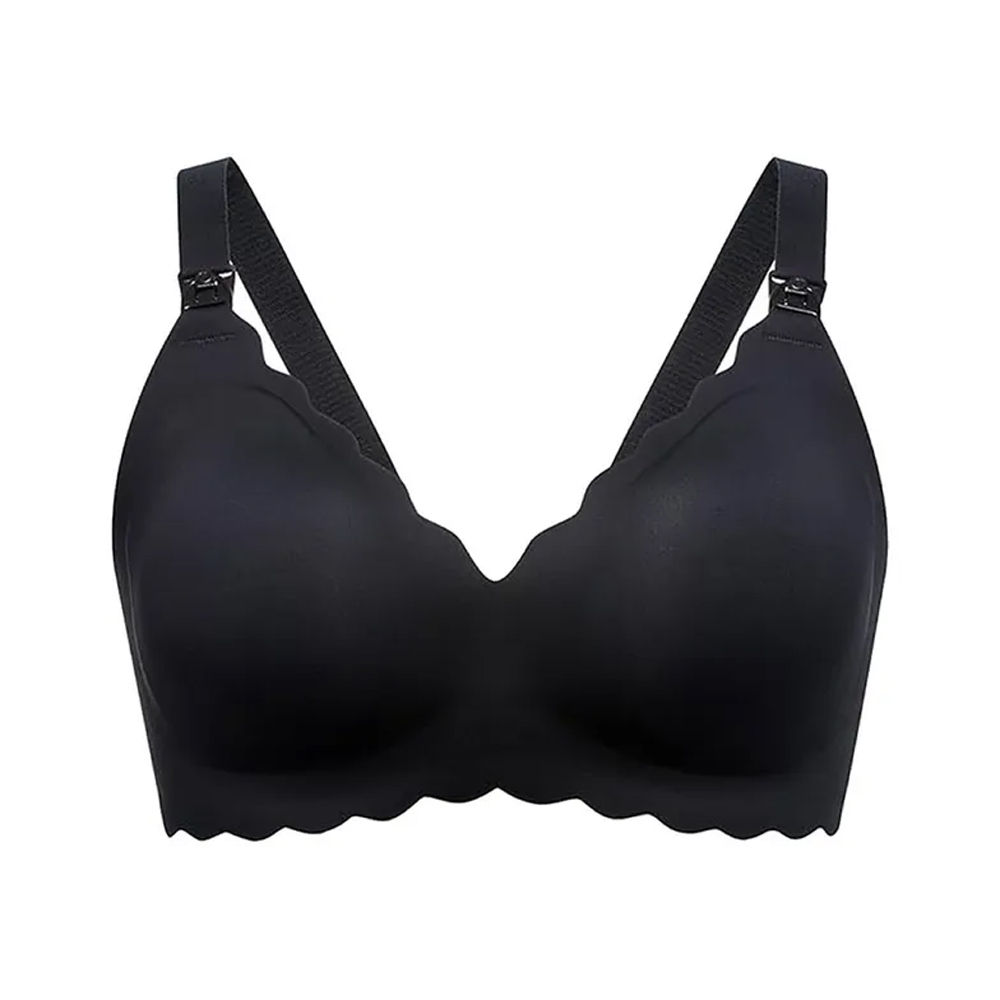 Бесшовный бюстгальтер для кормления Momcozy с резной окантовкой размер L черный