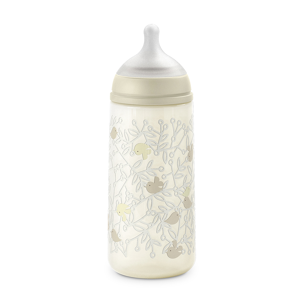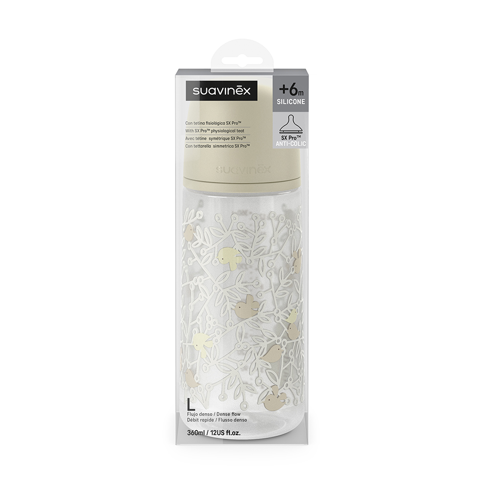 Бежевая бутылочка Suavinex Birdies словно дышит теплом и мягким светом утра. Её спокойный оттенок и плавные линии создают атмосферу уюта, где каждое кормление превращается в момент нежности и доверия.