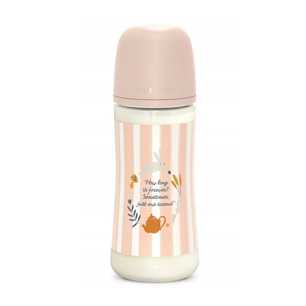 Объёмная и удобная пластиковая бутылочка в мягком розовом цвете, выполненная в чарующем стиле коллекции Wonderland. Создаёт комфорт при кормлении и наполняет каждое мгновение теплом и нежной заботой.