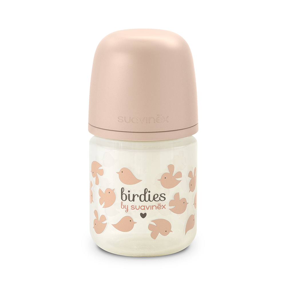 Бутылочка стеклянная Suavinex Birdies 120мл розовая