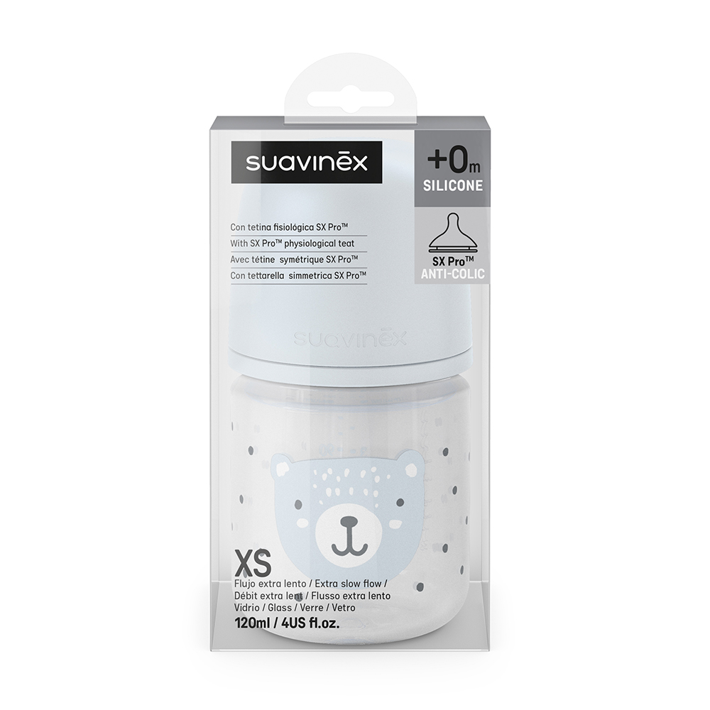 Голубая бутылочка Suavinex Wild напоминает тихое озеро в ясный день — прозрачная, спокойная, полная света. Её стеклянная поверхность и продуманный дизайн создают ощущение чистоты и легкости, а каждая деталь словно приглашает к уюту и гармонии.