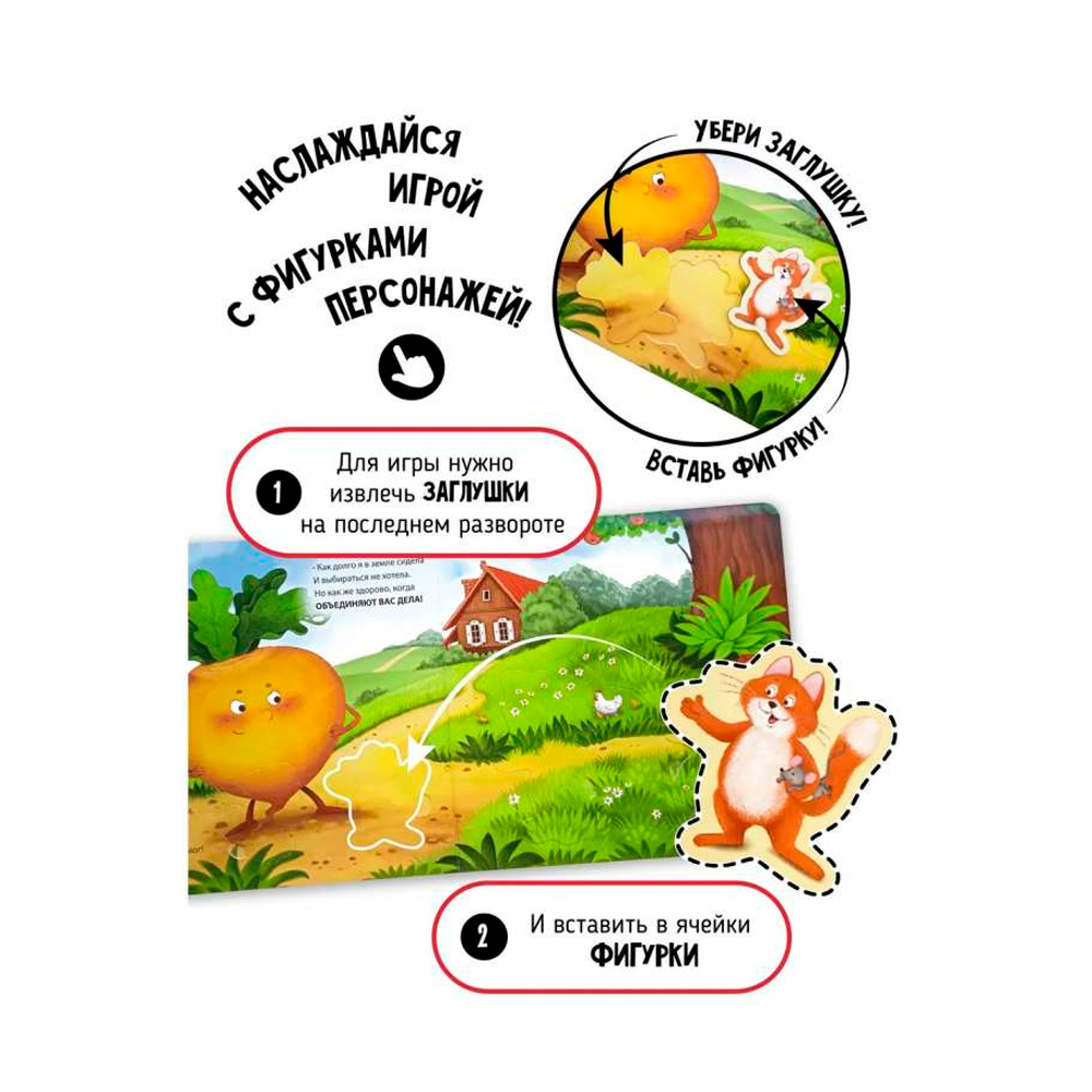 Любимая сказка в новом исполнении. Читай, играй фигурками, вставляй фигурки в соответствующие сказки отверстия, открывай окошки.