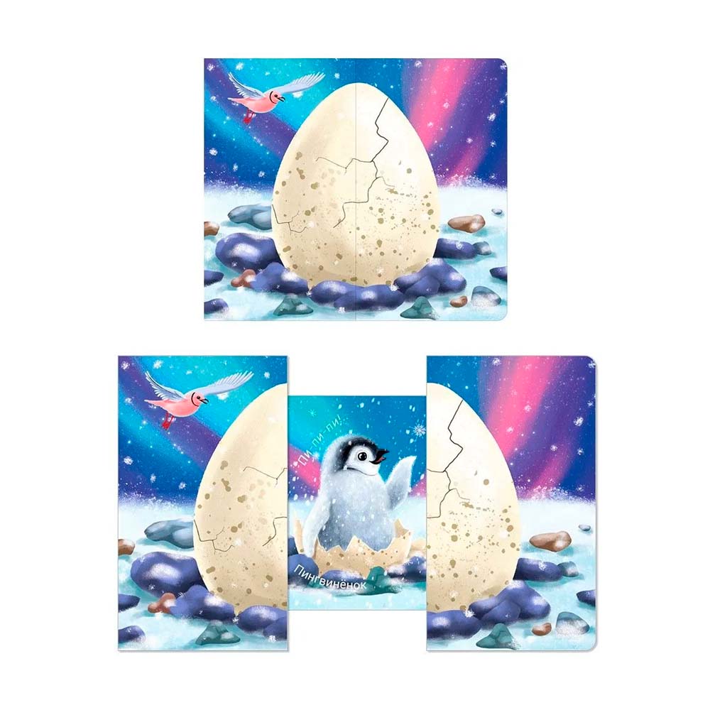 Раздвижная книжка-картонка «КТО ТАМ ВНУТРИ?» познакомит вашего малыша с животными, которые вылупляются из яиц. Они самые разные и удивительные: черепашка, пингвин, цыплёнок и даже динозавр!