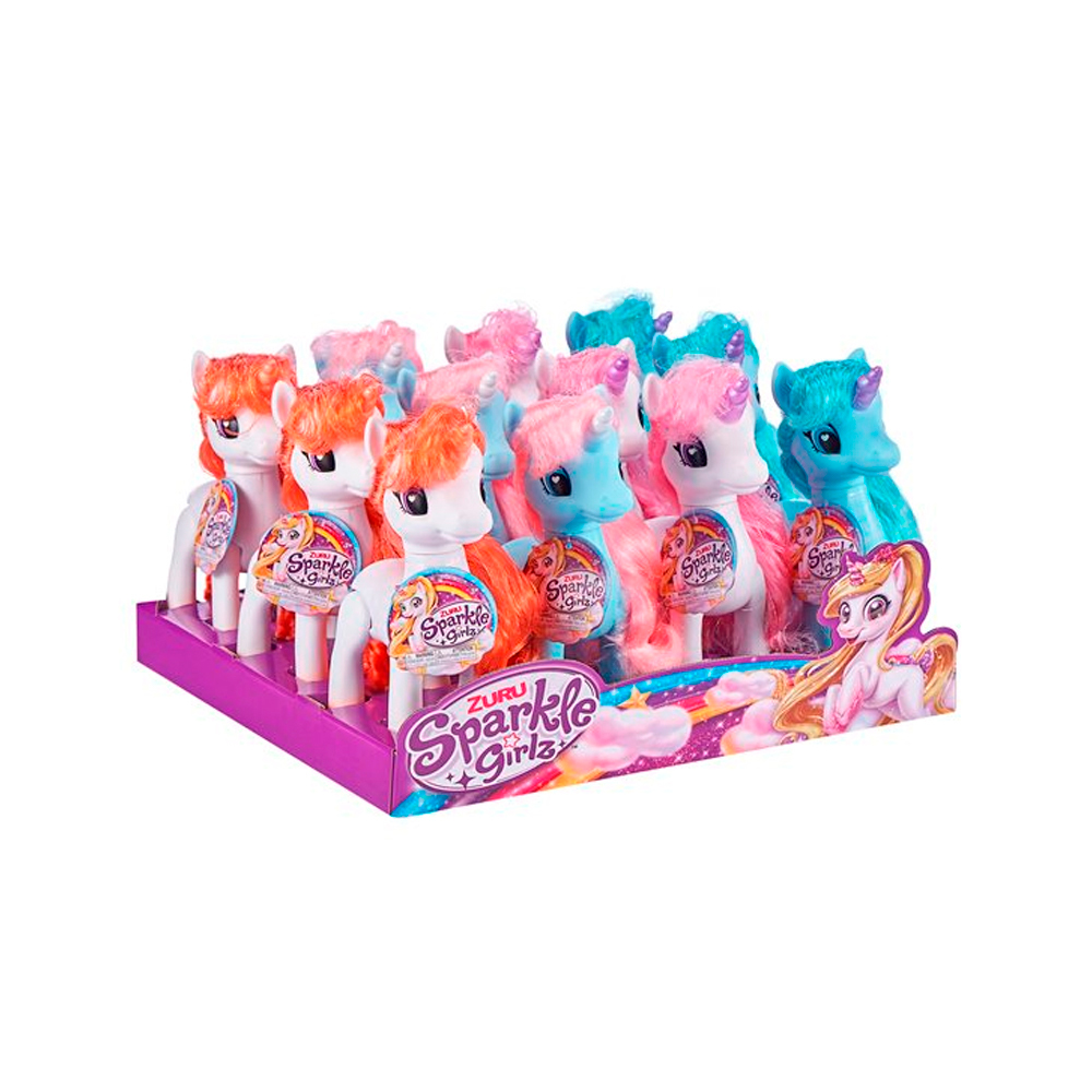 Кукла Sparkle Girlz Unicorn Ponies — Сказочный единорог словно воплощение волшебства и радужной фантазии, перенесённое в мир игр. Её сверкающие детали и яркие оттенки создают ощущение сказочной магии, будто она только что появилась из радужного леса. Уникальный образ с милыми чертами лица и грациозными движениями вызывает ощущение дружбы и приключений, приглашающих ребёнка в мир воображения.