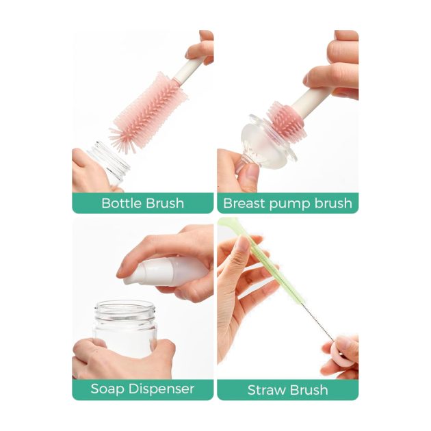 Набор силиконовых щеточек Momcozy — это инноваальное решение для родителей, стремящихся к эффективной и безопасной очистке детской посуды. Благодаря продуманному дизайну и высококачественным материалам, этот набор обеспечивает тщательную гигиену бутылочек, сосок и трубочек.