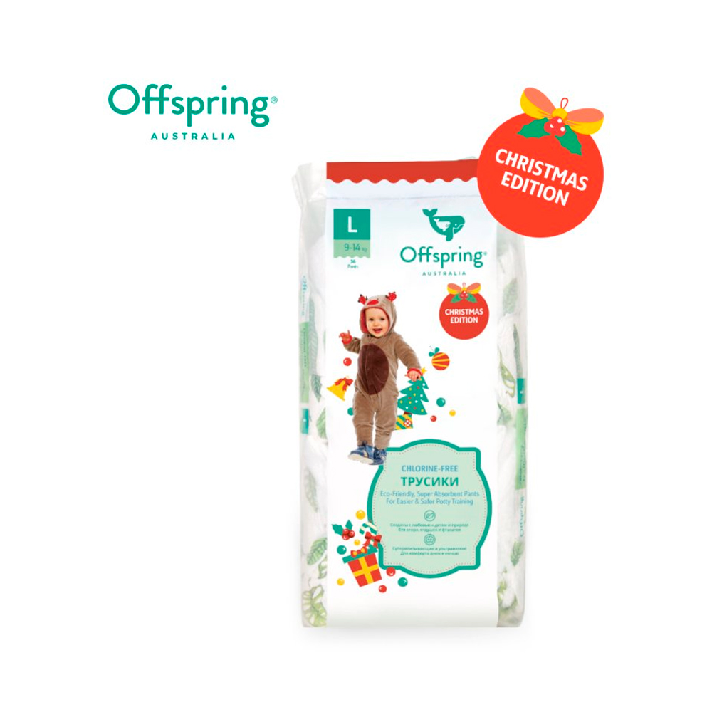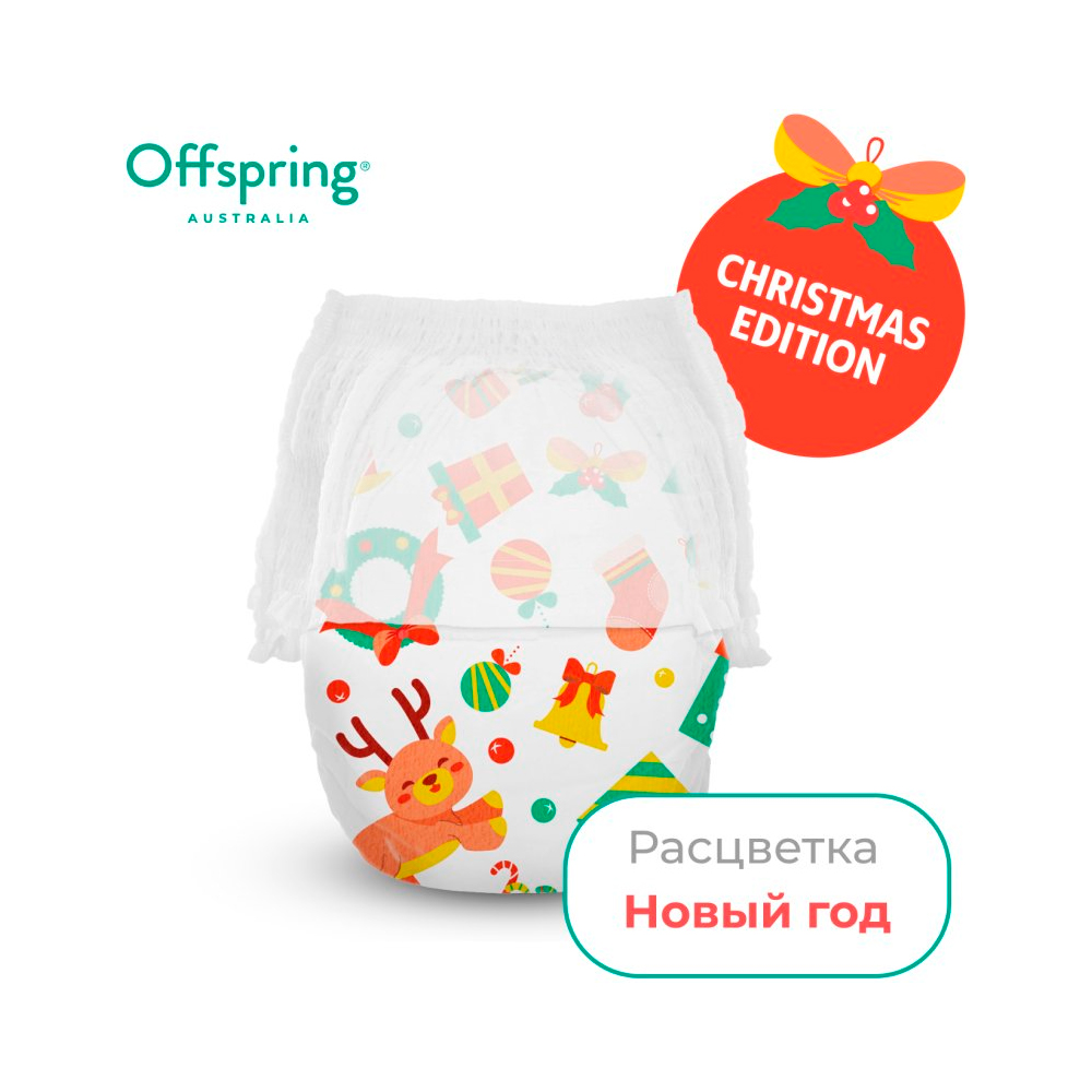 Offspring трусики-подгузники, L 9-14 кг 36 шт расцветка Новый год