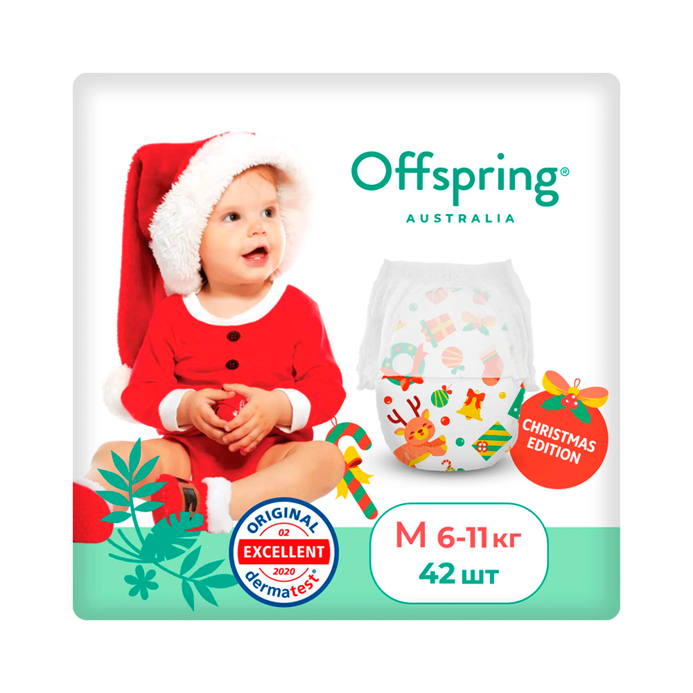 Offspring трусики-подгузники, M 6-11 кг 42 шт расцветка Новый год