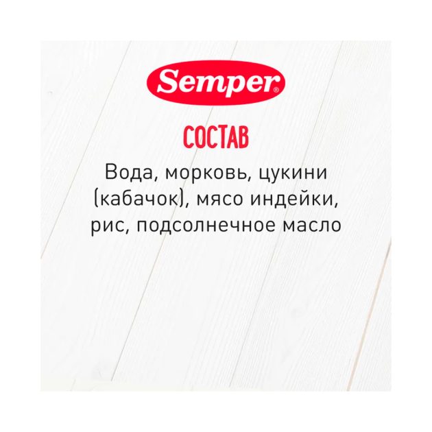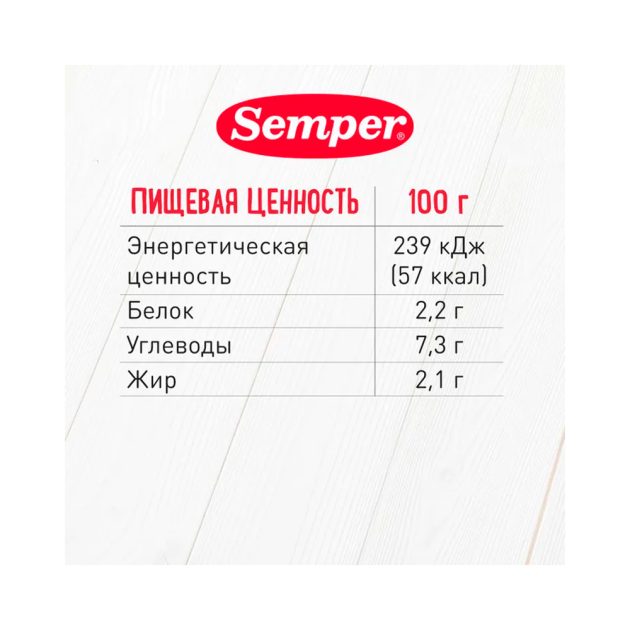 Semper — это вкусные продукты высокого качества, созданные экспертами на основе исследований собственного Института питания и последних достижений науки в области детской нутрициологии. В продуктах Semper мы стремимся сохранять естественный вкус и природную пользу ингредиентов, что влияет на формирование правильных пищевых привычек с детства. Когда малыш уже познакомился с продуктами первого прикорма, настаёт время для расширения рациона и знакомства с новыми, более плотными текстурами продуктов.