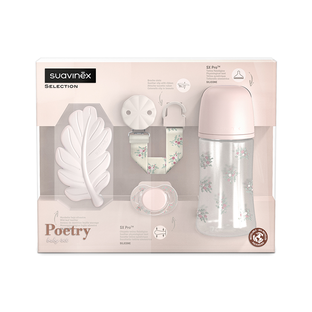 Подарочный набор Suavinex Poetry — аккуратно оформленный комплект средств для ухода и гигиены младенца, выполненный в мягкой розовой цветовой гамме. В набор входят продукты с деликатными формулами и лёгким ароматом, предназначенные для ежедневного использования.