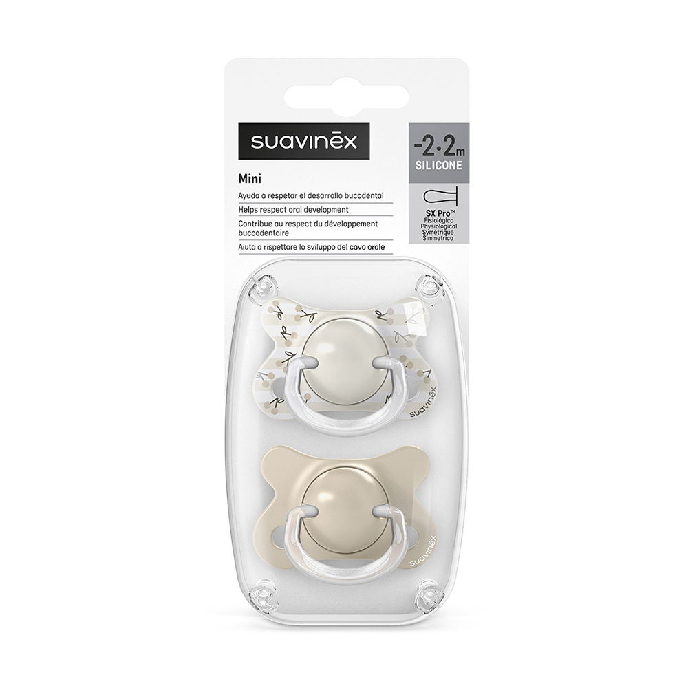 Пустышка Suavinex Birdies -2-2м+ 2шт бежевая