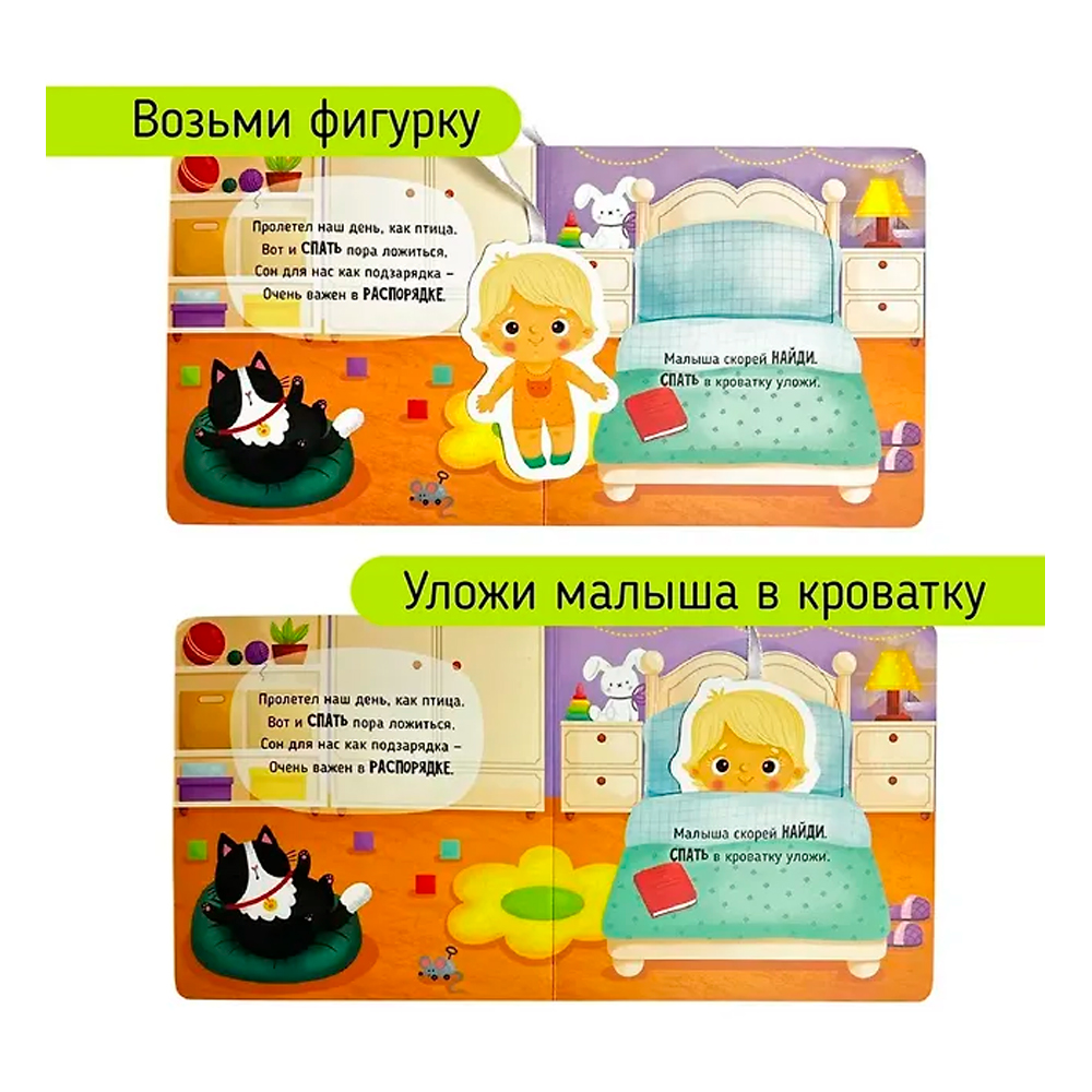 Уникальная развивающая книжка, которая станет настоящим помощником для самых маленьких! Эта интерактивная книга предлагает увлекательный способ узнать, как проходит день героя. Ваш малыш сможет умыть, покормить, погулять, искупать и уложить спать персонажа на ленточке, принимая активное участие в чтении! Яркие иллюстрации и веселые стихи превращают знакомые процессы в увлекательную игру, добавляя радости и веселья в каждое действие. Книга способствует развитию речи и воображения, делая обучение интересным и занимательным. Изготовленная из плотного картона, «Режим дня» идеально подходит для детских ручек. Удобный размер позволяет детям легко держать книгу самостоятельно, а тактильные элементы — герой на ленточке и картонные кармашки для различных ситуаций — добавляют интерактивности и увлекательности.
