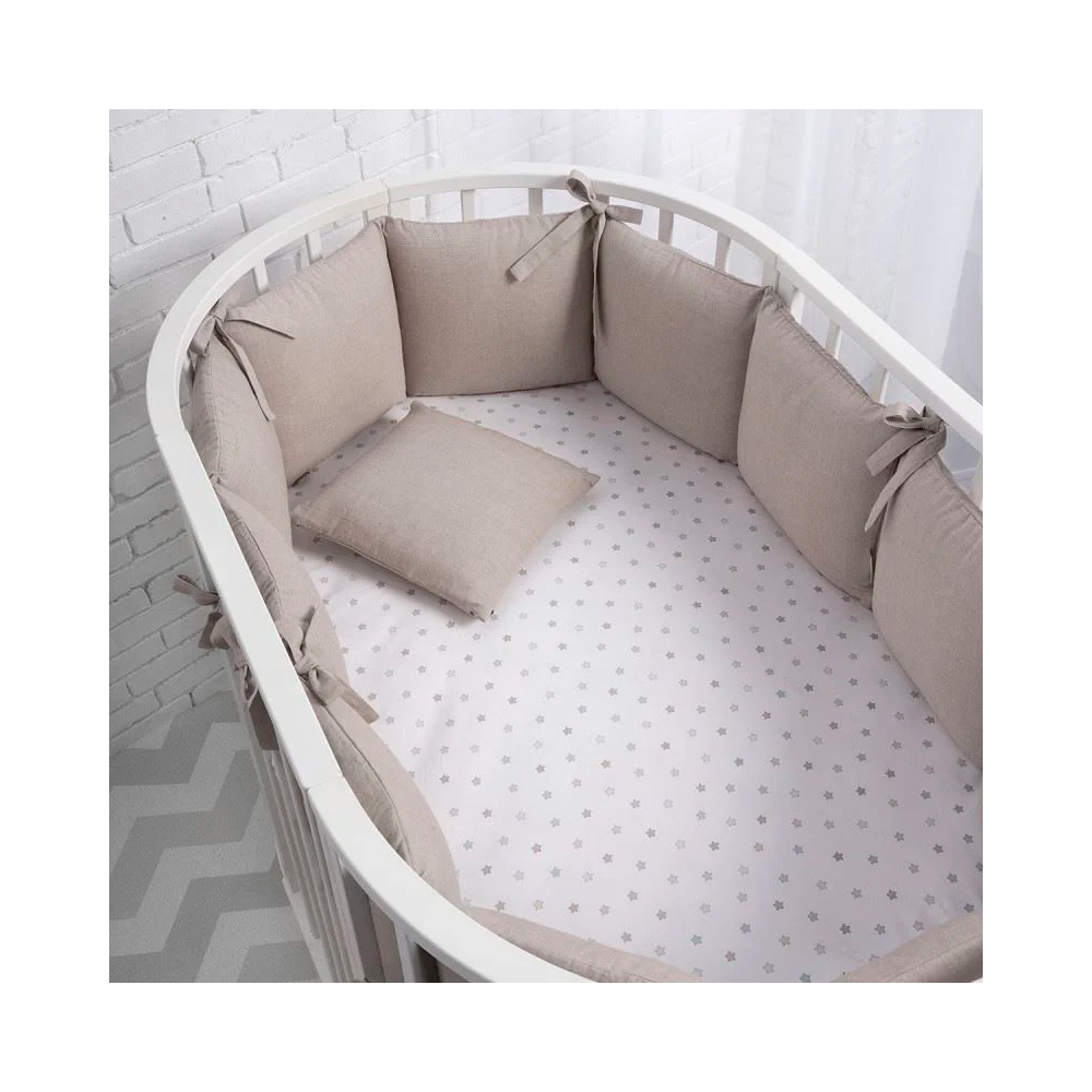 Новинка от Perina — нежные и практичные бортики, которые подойдут для любого спального места: прямоугольного, круглого или овального. Чехлы из натурального хлопка Eco Soft Cotton. Это очень мягкая разновидность хлопка, который отлично пропускает воздух и долго остается как новый даже после многократных стирок. Его секрет в специальном способе создания узора без окрашивания.
